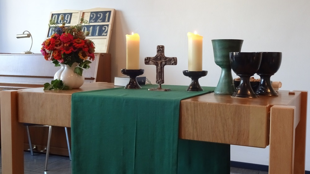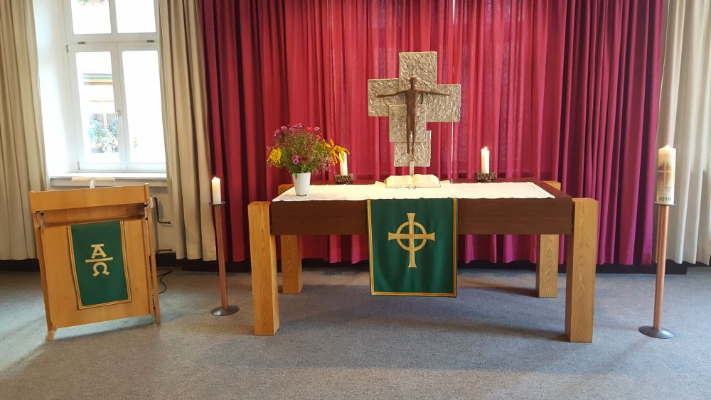 In der Kirche „Zum guten Hirten“ feiern wir einmal im Monat Gottesdienst.